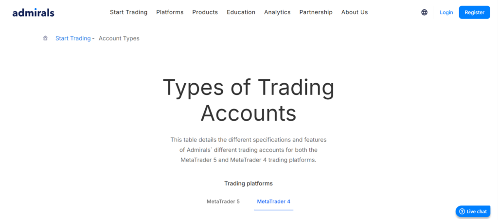 Apart from the forex demo account, this broker offers Invest.MT5, Trade.MT4, Zero.MT4, Trade.MT5, Zero.MT5 and Bets.MT5 (UK). To successfully navigate your trading account, you also need to consider about leverage and minimum deposit. Talking about leverage in general, the maximum leverage offered by Admirals is up to 1: 500 Meanwhile, you can open an account with a starting capital of $1.