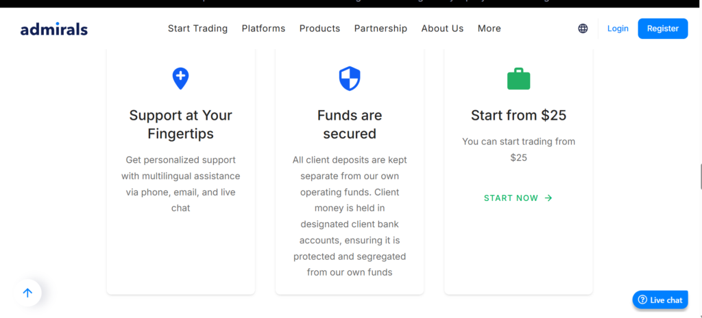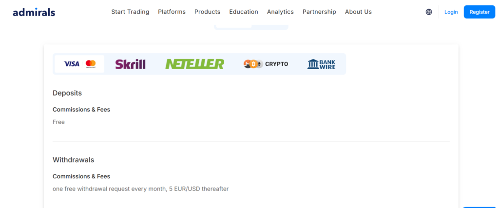 Admirals’ variety of funding methods can be found below: