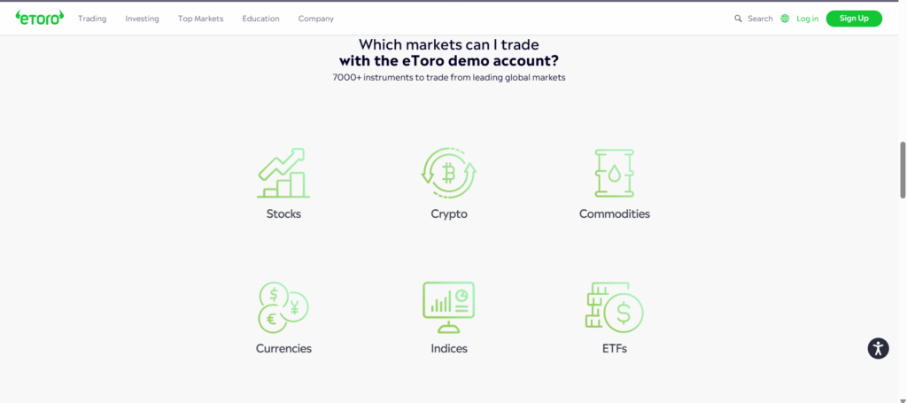 Besides lots of currency pairs, eToro also offers some instruments you would like to trade on, such as Forex, Gold & silver, CFD, Stocks, Indexes, Soft commodities, Metals, ETF, Crypto and Oil for your best choice. Somehow, remember that different instrument has different trading conditions. In this case, you have to make sure that your strategy is well suited for the instrument you chose.