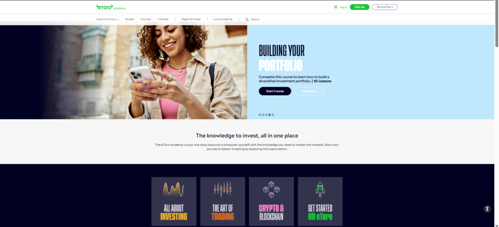 - The Complete Guide to FinTech: provides basic educational content for new retail traders. eToro also manages a blog, covering topics related to trading and company-related topics.