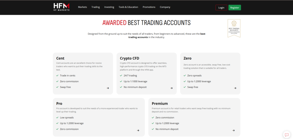 Apart from the forex demo account, this broker offers Islamic Account, Premium, Cent, PAMM, Micro and HFCOPY. To successfully navigate your trading account, you also need to consider about leverage and minimum deposit. Talking about leverage in general, the maximum leverage offered by HF Markets is up to 1: 2000 Meanwhile, you can open an account with a starting capital of $0.