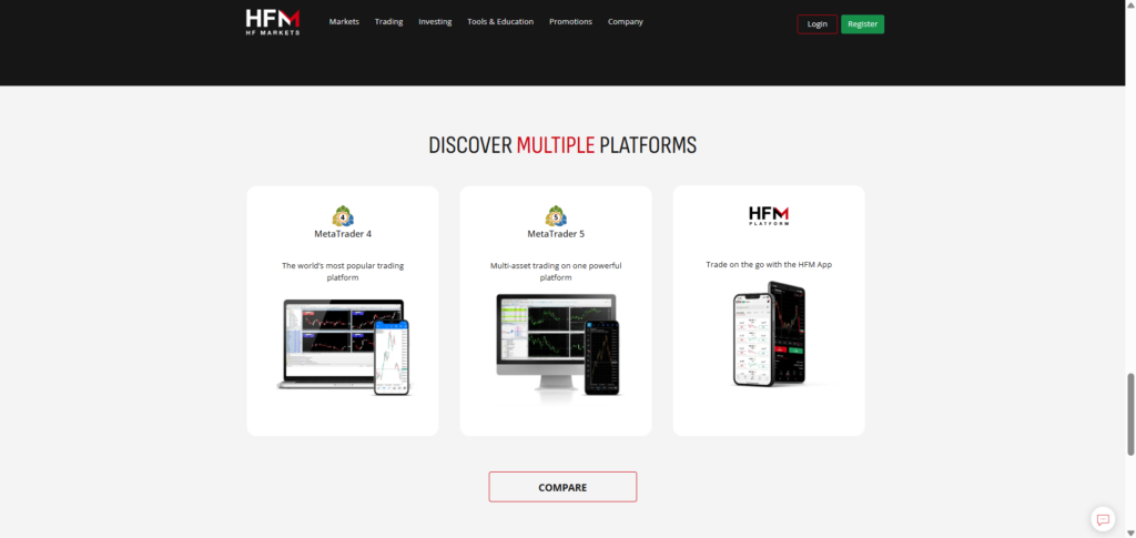 Hereby, HF Markets offers you MetaTrader 4 (Limited with 30 days), MetaTrader 5 and Social trading.
