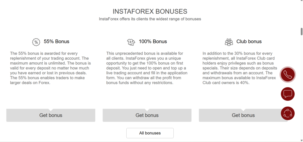InstaForex offers the following support options to its customers, including 24/7 customer service by a multi-lingual team, a broad selection of communication methods such as phone calls, live chat, e-mail, or any messengers.