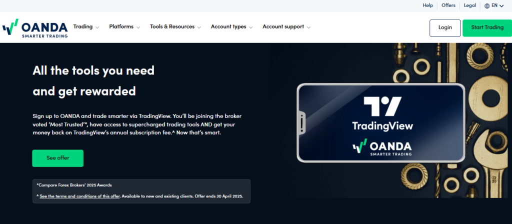 OANDA offers a diverse set of trading platforms and tools to enhance the trader’s experience across various asset classes like forex, CFDs, and cryptocurrencies. It provides the highly customizable MetaTrader 5 (MT5), the popular TradingView, and its own OANDA Mobile App, each catering to different trading preferences.