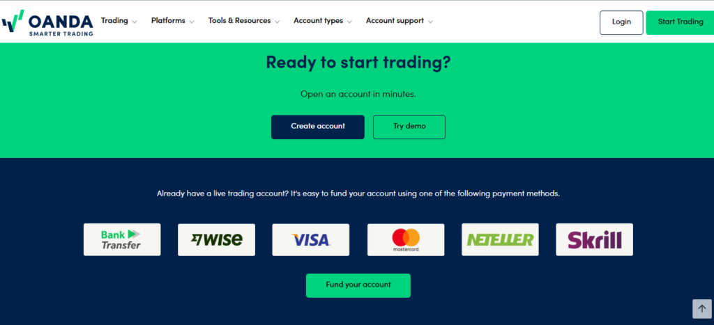 OANDA is a globally trusted online trading platform that offers forex, commodities, indices, metals, and other CFD products. With over 25 years of experience, OANDA is committed to providing powerful platforms, advanced trading tools, and transparent pricing to traders worldwide. The platform supports easy deposits and withdrawals, with a wide range of payment methods, including credit/debit cards, bank transfers, Skrill, and Neteller. OANDA also offers alternative payment methods in specific regions like Southeast Asia, Latin America, and Africa. Whether you’re a seasoned trader or a beginner, OANDA’s demo account and educational resources are available to guide you through your trading journey.