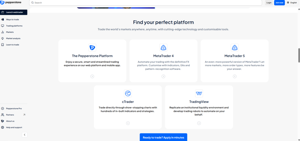 Hereby, Pepperstone offers you MetaTrader 4, MetaTrader 5, cTrader, TradingView, Social trading and Web.