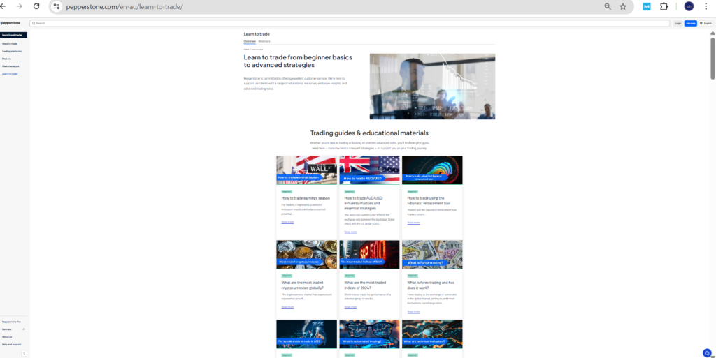 Pepperstone has an extensive range of research material including high-quality written market commentary, trade ideas, and videos, presented with tradeable information and well-explained. Pepperstone offers a modest range of education resources for beginner traders with an in-depth collection of articles, supplemented by webinars and two trading courses.